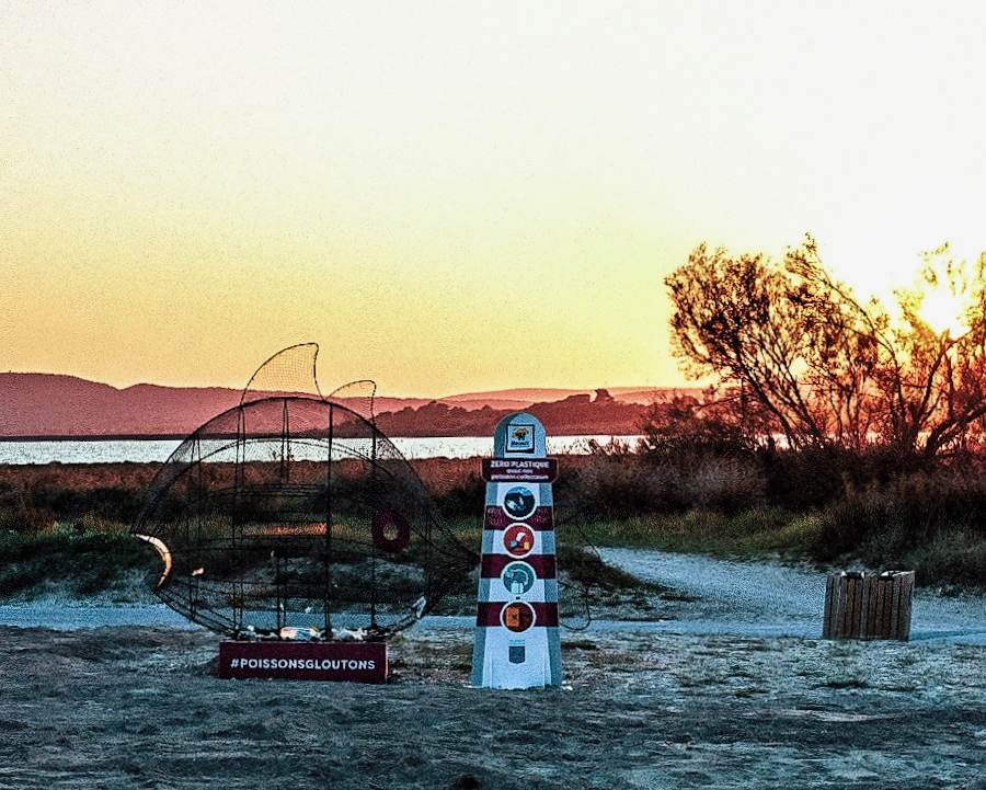 Sur la plage de Maguelone, un faux poisson ventru n’en finit plus d’avaler les déchets plastiques. Entre indifférence et amusement, l’appétit du « poisson glouton » cache pourtant une sombre réalité.
